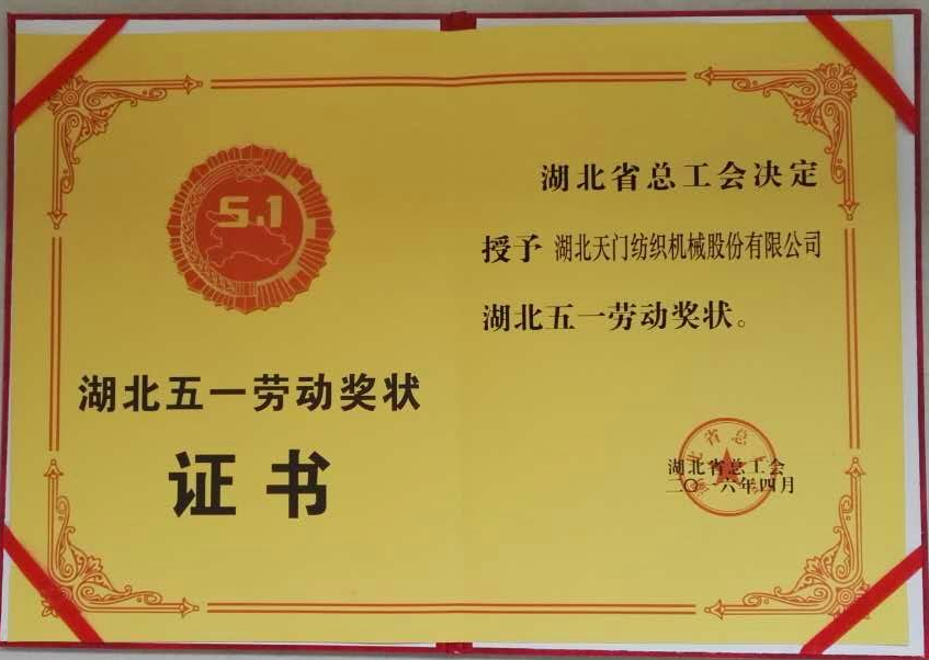 近日,公司傳來(lái)喜訊。4月28日在武漢東湖賓館召開(kāi)的湖北省慶祝五一國(guó)際勞動(dòng)節(jié)暨表彰大會(huì)上,湖北天門紡織機(jī)械股份有限公司被省工會(huì)授予“五一勞動(dòng)獎(jiǎng)狀”,這是天門市本年度唯一上榜單位。