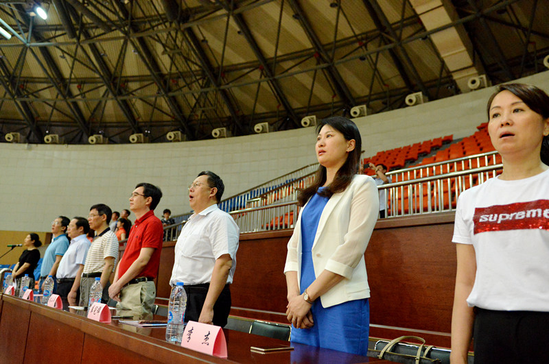 中國紡織工業(yè)聯(lián)合會副會長、中國化學纖維工業(yè)協(xié)會會長端小平宣布比賽開幕并為籃球賽開球。
