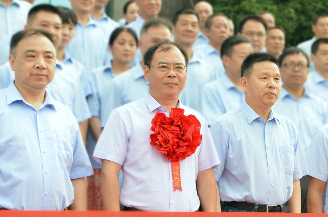 清風(fēng)徐徐,碧空萬里,2019年6月24日上午8時(shí),天門紡機(jī)科技樓前人頭攢動(dòng),鑼鼓齊鳴,熱鬧非凡。歡送公司員工樊早兵赴京參加中國機(jī)械工業(yè)聯(lián)合會(huì)舉辦的2019年度勞動(dòng)模范表彰大會(huì)。