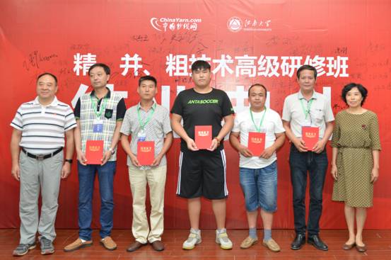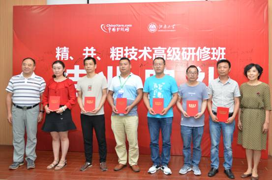 頒發(fā)證書(shū)的環(huán)節(jié)中,學(xué)員們從中國(guó)紗線網(wǎng)總編王果剛和江南大學(xué)謝春萍老師手中接過(guò)蓋著鋼印的結(jié)業(yè)證書(shū),聆聽(tīng)來(lái)自領(lǐng)導(dǎo)們的鼓勵(lì),接受他人的肯定,回想這幾天努力時(shí)灑下的汗水,一切都是值得的。