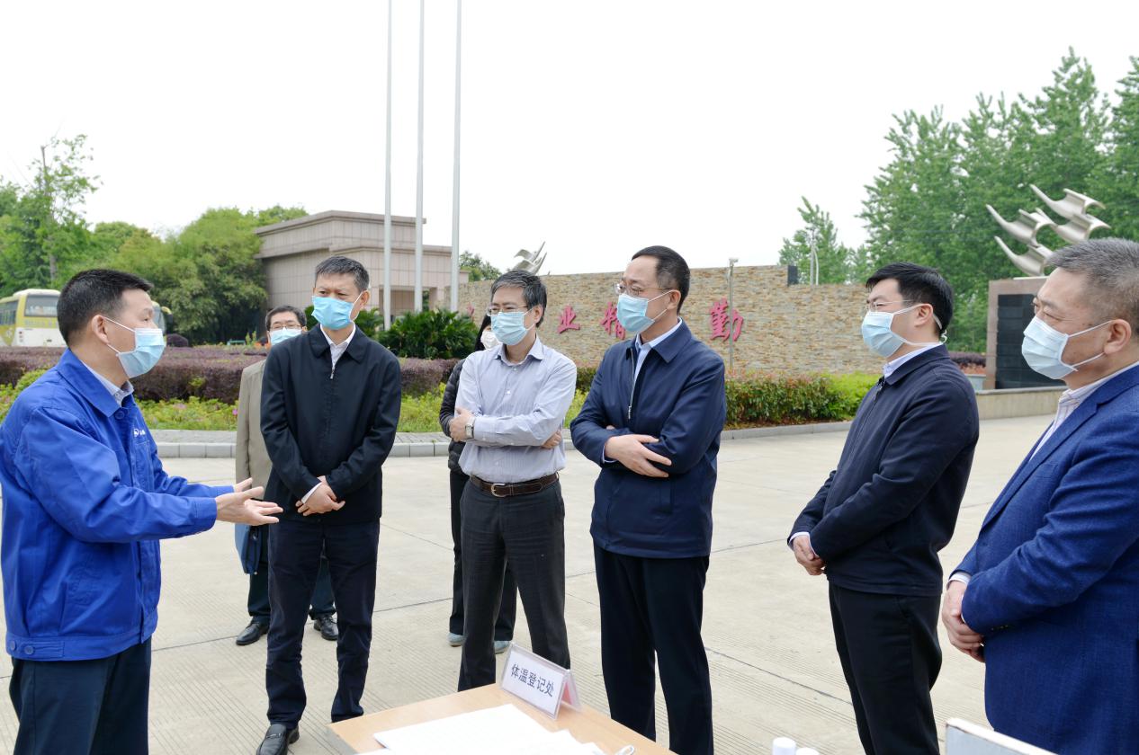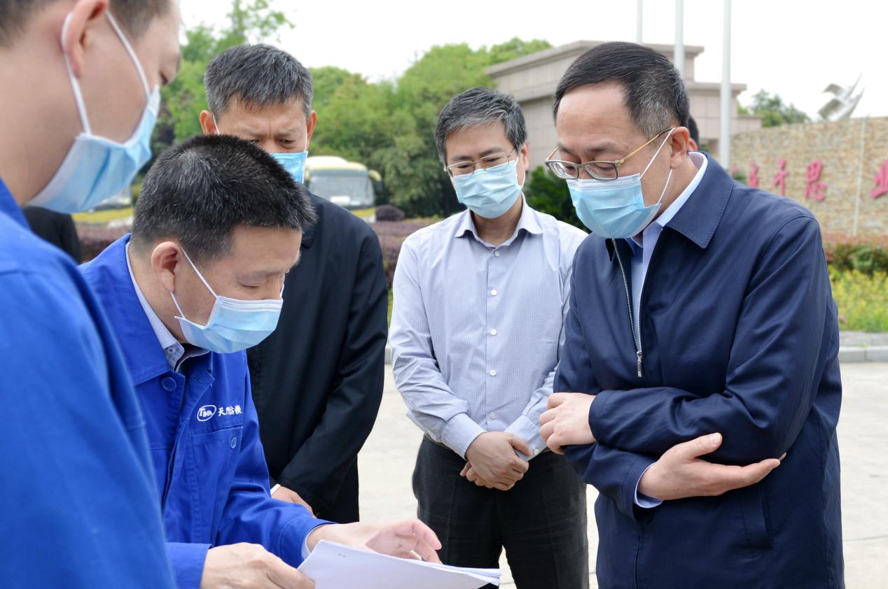 4月23日,國家衛(wèi)健委副主任于學軍率工作組,在湖北省衛(wèi)健委副主任涂遠超、天門市委書記莊光明、天門市代理市長楊興銘等領導的陪同下,到天門紡機調研指導企業(yè)疫情防控及復工復產情況。