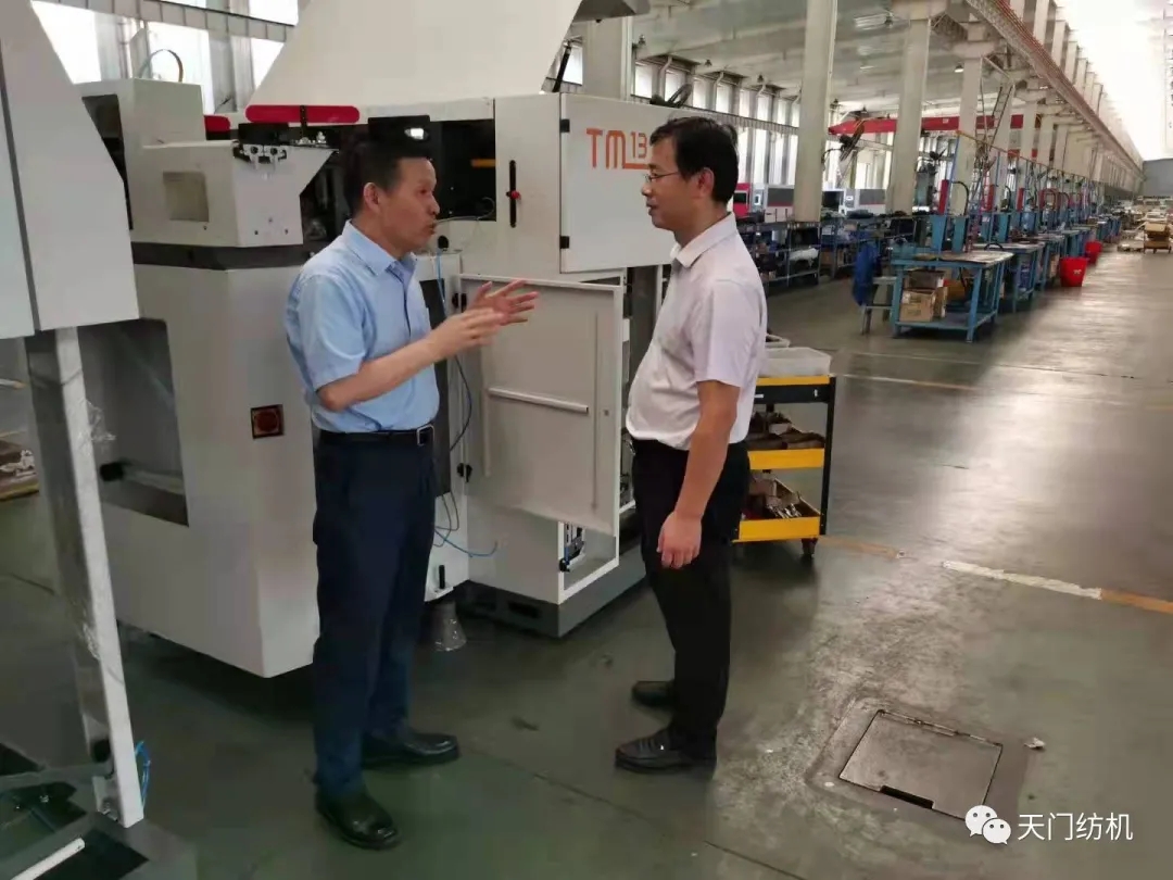 在公司董事長沈方勇的陪同下,夏局長一行到生產(chǎn)車間現(xiàn)場查看了生產(chǎn)制造情況,聽取了公司新開發(fā)的TM19、TM13產(chǎn)品介紹,了解了企業(yè)正在實施的“智慧工廠”項目。夏局長對天門紡機不斷加強新產(chǎn)品技術(shù)創(chuàng)新、推進技術(shù)裝備改造升級給予了充分肯定。