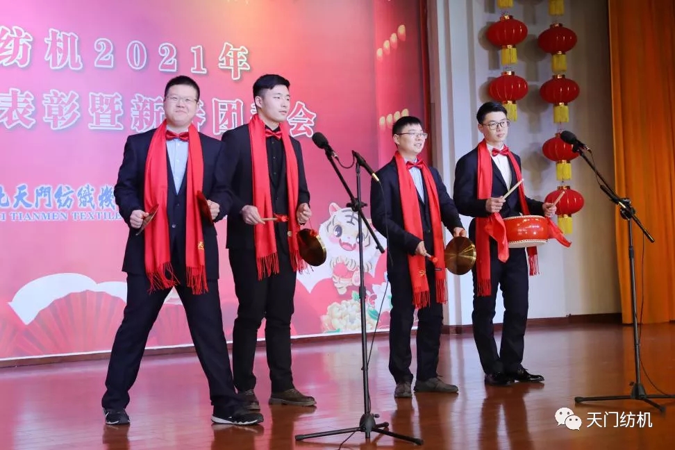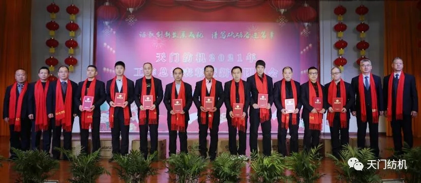 金牛奮蹄去,瑞虎踏雪來。1月29日,天門紡機(jī)的大禮堂燈光璀璨、歡聲笑語,2021年工作總結(jié)表彰暨新春團(tuán)拜會(huì)隆重舉行,全司員工歡聚一堂,共賀虎年新春。