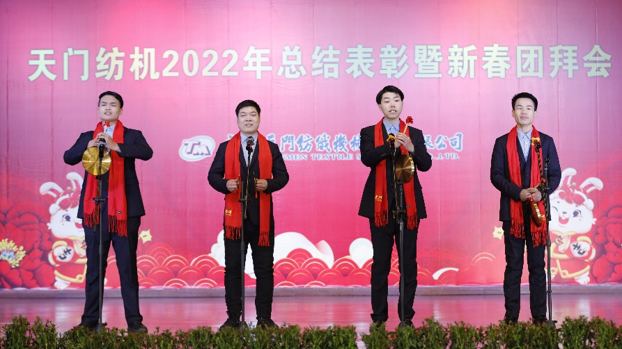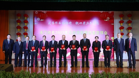 2023年1月18日下午,天門紡機艷陽高照、喜氣盈門,2022年工作總結(jié)表彰暨新春團拜會在綜合樓多功能廳隆重舉行。