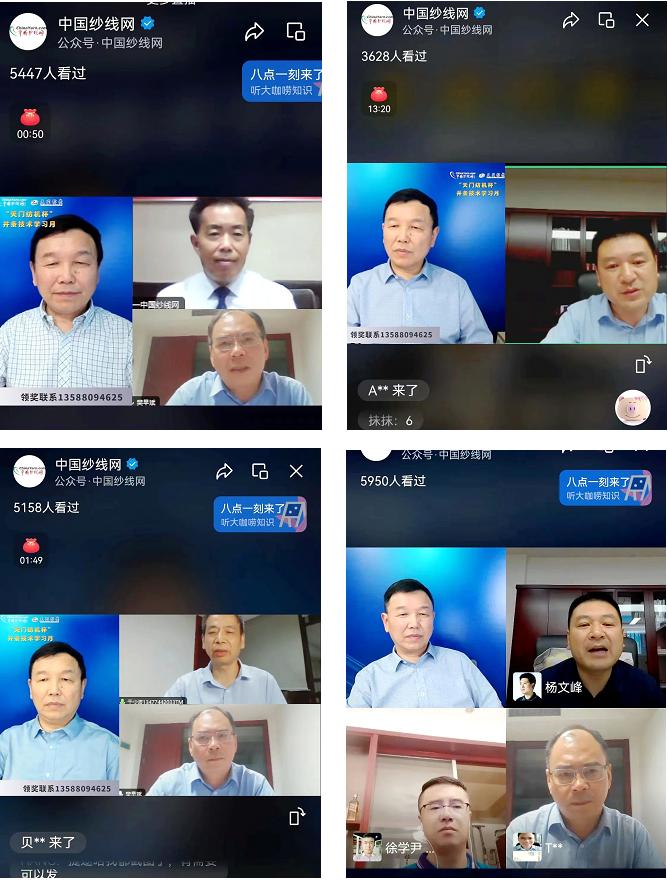 本次活動進行了6場直播。其間,天門紡機副總經(jīng)理楊文峰就紡織裝備的發(fā)展趨勢作了深度剖析,分享了并條機牽伸形式、傳動方式、換筒方式及自調(diào)勻整等方面的專業(yè)知識;天門紡機品控總監(jiān)樊早斌、售后服務(wù)中心主任于少波分別就并條機操作、工藝要求、維護保養(yǎng)、常見問題排查等方面的知識和經(jīng)驗進行了交流。線上學習氛圍濃厚,平均每場都有近6千人參加學習,總計超3萬余人。