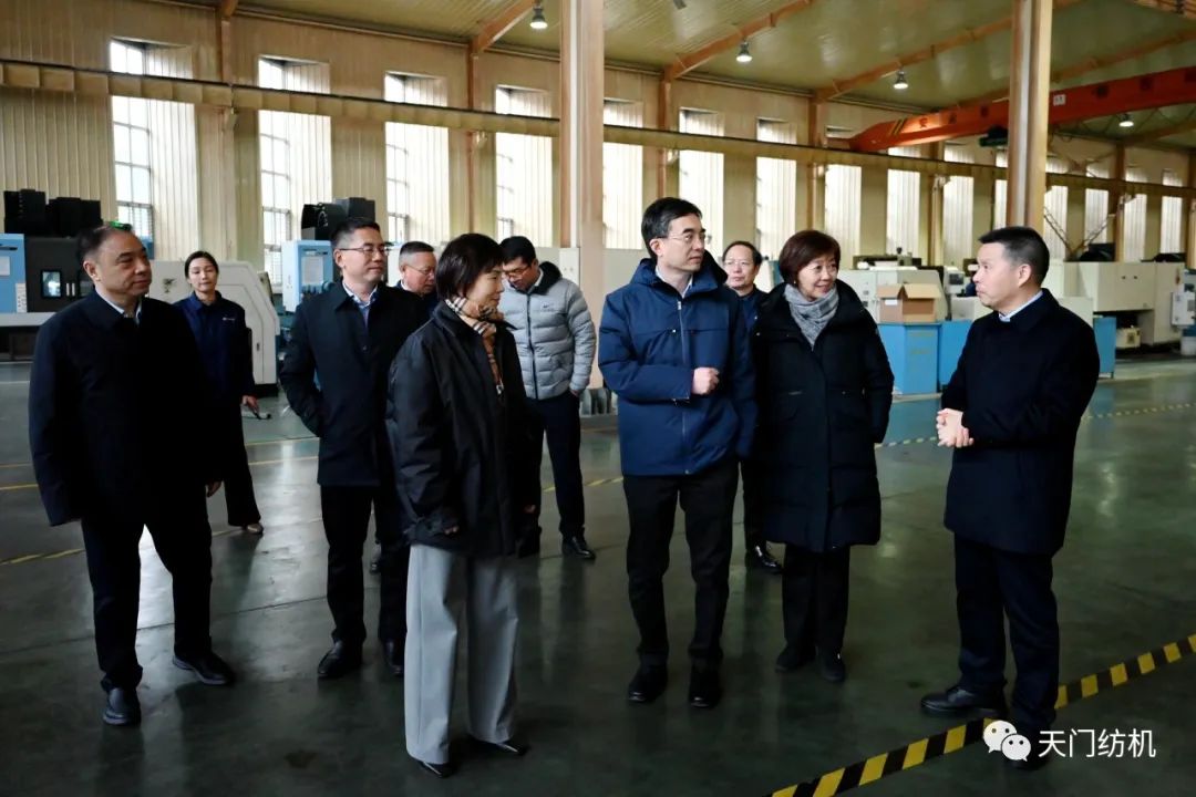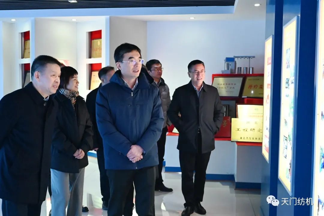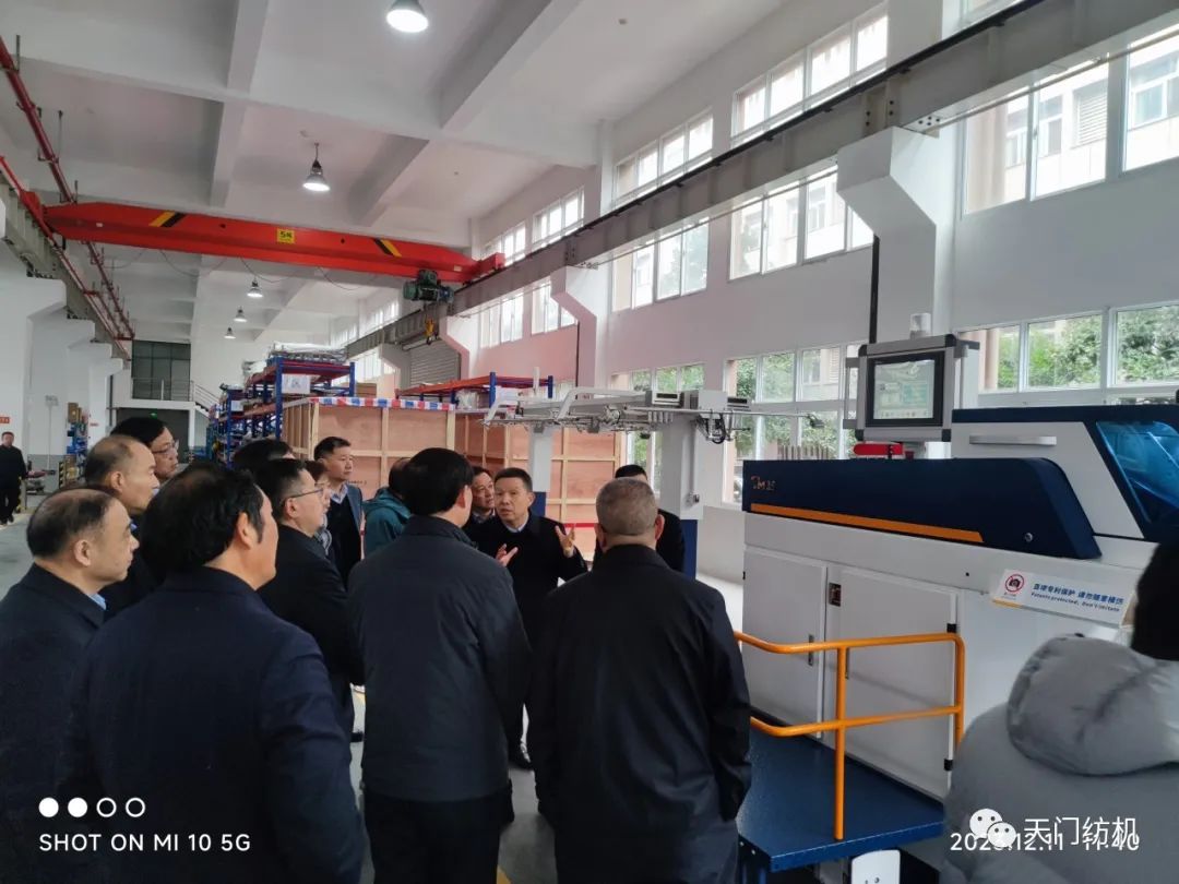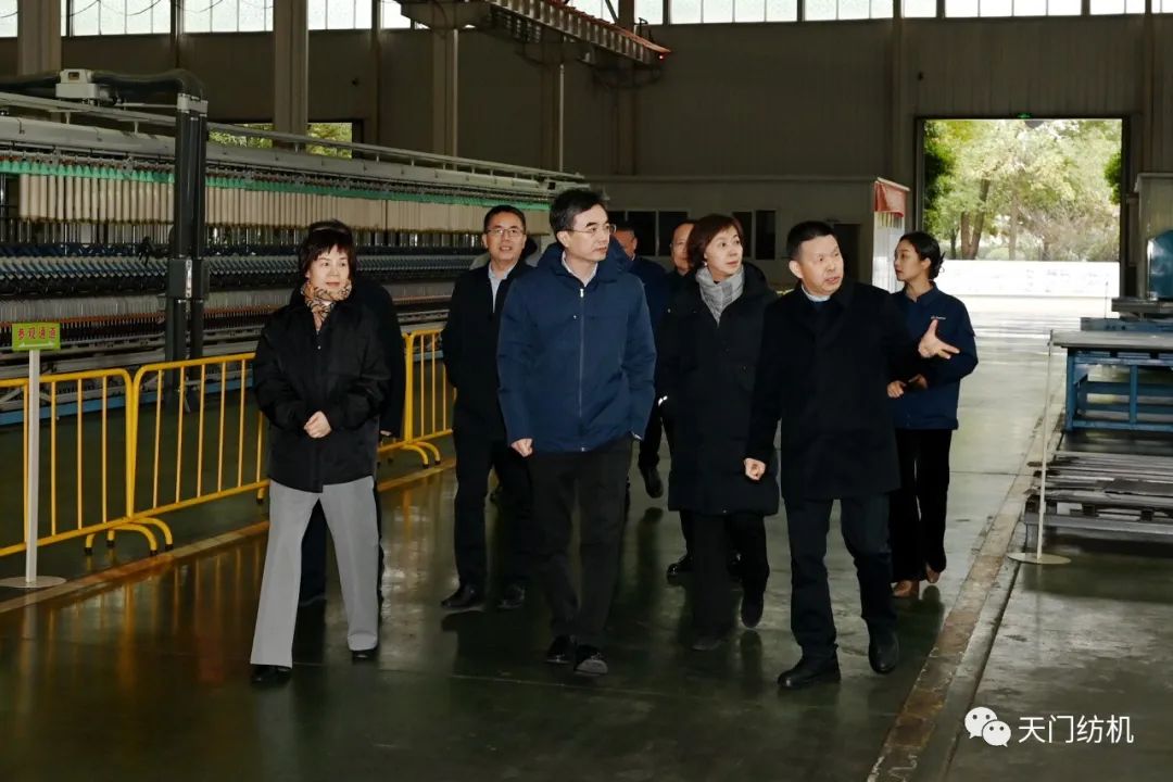 2023年12月11日,中國紡織工業(yè)聯(lián)合會副會長端小平,中國紡織工業(yè)聯(lián)合會信息中心黨委書記、社會責任辦主任閻巖,中國棉紡織行業(yè)協(xié)會會長董奎勇、副會長景慎全等領(lǐng)導專程調(diào)研天門紡機位于武漢的研發(fā)中心及天門基地。