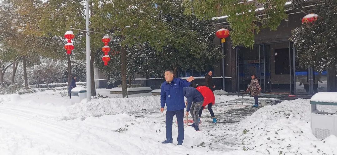 清晨的氣溫在零下4度左右,寒意刺骨。但大家不懼嚴(yán)寒,手握鐵鍬,高舉竹竿,竭盡全力清除積雪。