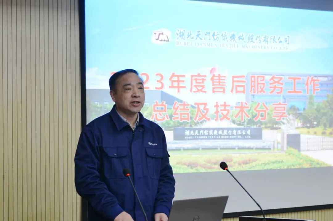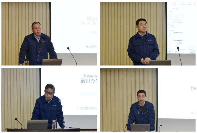 17名售后服務(wù)人員作了2023年度工作總結(jié)及技術(shù)交流;樊早兵總監(jiān)作專業(yè)知識講座;鄭強(qiáng)總工程師安排布置了T1系列并條機(jī)改進(jìn)工作事項;楊文峰副總經(jīng)理作案例分享;于少波主任作經(jīng)驗分享。