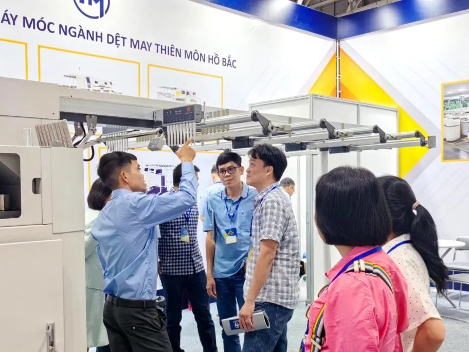 展會(huì)期間,越南PHU BAI、BROCSTEX、TPP TEXTILE、PHONG PHU、VICOTEX等多家紡織企業(yè)蒞臨天門(mén)紡機(jī)展位進(jìn)行參觀交流,對(duì)天門(mén)并條機(jī)贊許有嘉,評(píng)價(jià)其出條成形好,效率高,且性能穩(wěn)定,節(jié)能降耗。前期的一些用戶也來(lái)到現(xiàn)場(chǎng)考察,商討繼續(xù)合作的意向。