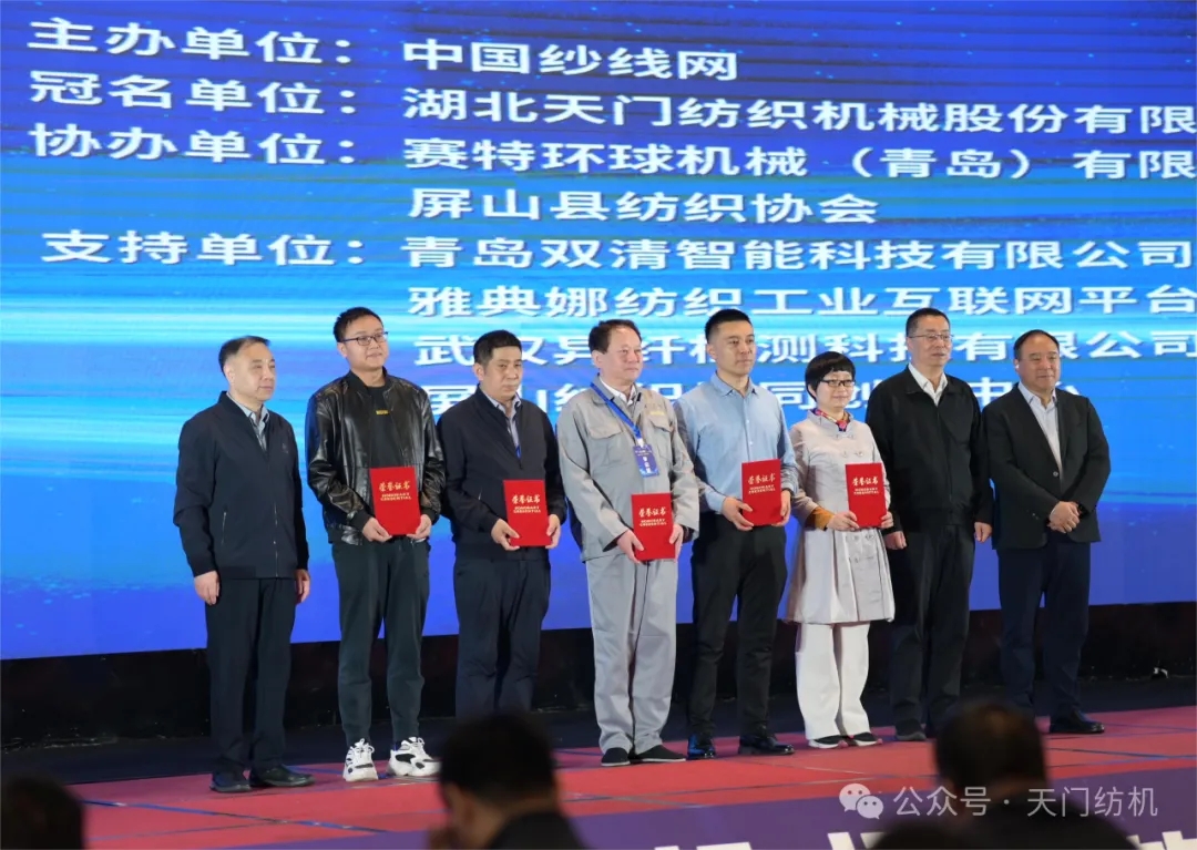 在領(lǐng)導(dǎo)和嘉賓致辭之后,舉行了“天門紡機(jī)杯”第12屆全國紡紗技術(shù)創(chuàng)新研討會論文頒獎(jiǎng)活動(dòng)。中國紡織機(jī)械協(xié)會會長顧平、中國紗線網(wǎng)總編王果剛、天門紡機(jī)總經(jīng)理焦倫進(jìn)為獲獎(jiǎng)作者頒獎(jiǎng)。