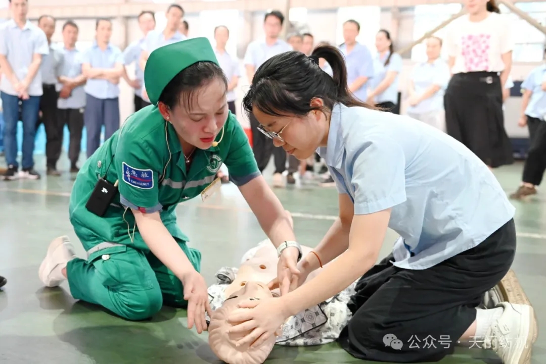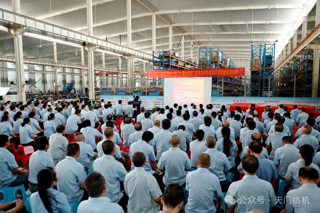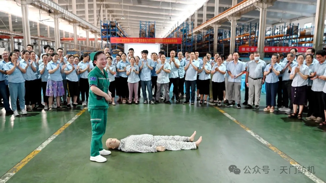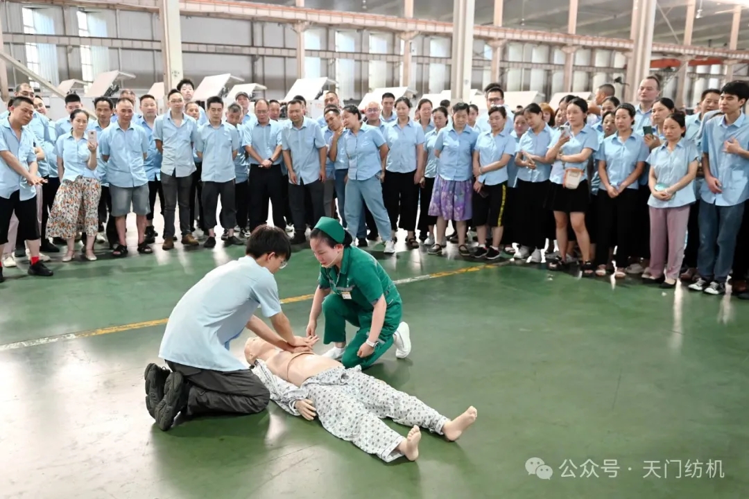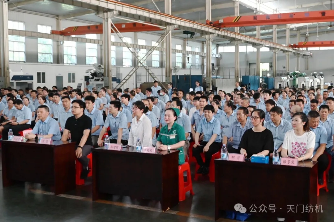 室外赤日炎炎,酷暑難當(dāng);室內(nèi)座無虛席,氣氛熱烈。2024年7月17日下午,天門紡機在生產(chǎn)現(xiàn)場組織了一場別開生面的健康知識及急救技能培訓(xùn)活動,天門市第一人民醫(yī)院的多位醫(yī)療專家應(yīng)邀來公司進行健康知識講座和急救實操演示。