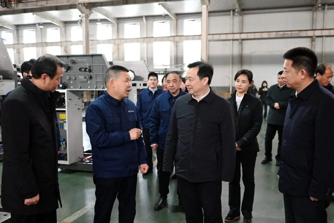 2025年3月4日上午,湖北省經(jīng)信廳黨組書(shū)記、廳長(zhǎng)汪元程,總工程師盛章學(xué),經(jīng)濟(jì)運(yùn)行處處長(zhǎng)王雋,裝備工業(yè)處處長(zhǎng)王瓊,原材料工業(yè)處處長(zhǎng)鄧忠明,綜合處二級(jí)主任科員李雷等一行到天門(mén)紡機(jī)調(diào)研。天門(mén)市委書(shū)記、市人大常委會(huì)主任紀(jì)道清,天門(mén)市委副書(shū)記、市長(zhǎng)肖敏,天門(mén)市委常委、副市長(zhǎng)曾令慧,天門(mén)市委常委、秘書(shū)長(zhǎng)高文博等市領(lǐng)導(dǎo)及天門(mén)市經(jīng)信局黨組書(shū)記、局長(zhǎng)陳明敏等部門(mén)負(fù)責(zé)人全程陪同調(diào)研。