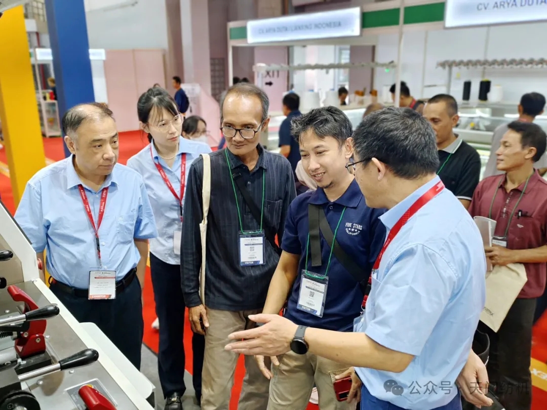 轉(zhuǎn)戰(zhàn)印尼雅加達,天門紡機的展位熱度不減。 PT.KAHATEX、PT.INDO、STEVEN TANUWIJAYA、PT.TEXMACH IMPEX、INDO LIBERTY TEXTILES PT等40余家紡企紛至沓來,深入探討技術(shù)細節(jié)與合作可能。展會上,公司不僅有效展示了最新的產(chǎn)品和技術(shù),更是收獲了多份訂單。