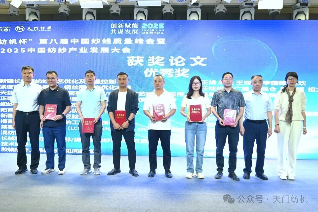 開幕式上,隆重舉行了“天門紡機杯”第八屆中國紗線質(zhì)量峰會獲獎?wù)撐念C獎活動,新疆維吾爾自治區(qū)紡織工程學(xué)會理事長、新疆大學(xué)紡織與服裝學(xué)院院長夏鑫,天門紡機總經(jīng)理焦倫進(jìn),中國紗線網(wǎng)總裁鞠彥軍為獲獎作者頒發(fā)了證書和獎金。